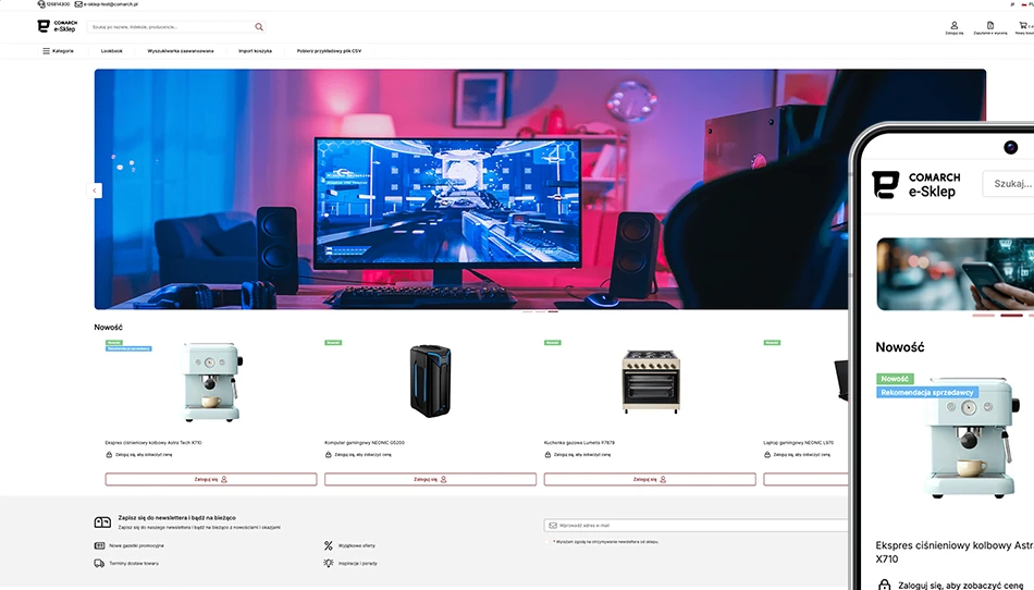 Comarch e-Sklep to platforma e-commerce typu SaaS (Software as a Service) stworzona przez firmę Comarch, działająca w modelu abonamentowym. Nie instalujesz jej na swoim serwerze - sklep działa w chmurze Comarch Data Center, a Ty płacisz miesięczny abonament.