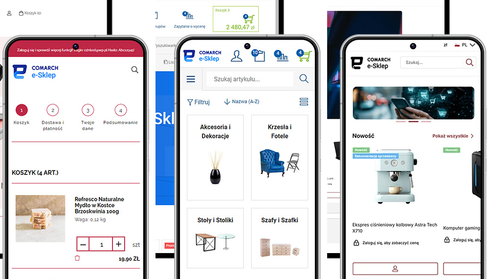 Zanim wejdziemy w porównania, wyjaśnijmy jedną rzecz. Szablony Comarch e-Sklep to nie są „skórki", które zmieniają kolory i tyle. Szablon decyduje o całym frontendzie sklepu – układ strony głównej, lista produktów, karta produktu, koszyk, checkout, strefa klienta. Wszystko.